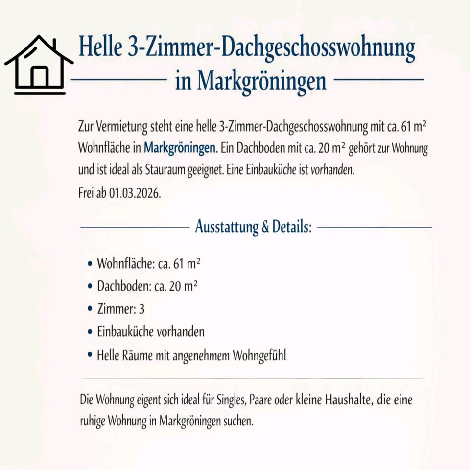 Mehr zum Angebot 3-Zimmer-Dachgeschosswohnung in Markgröningen: